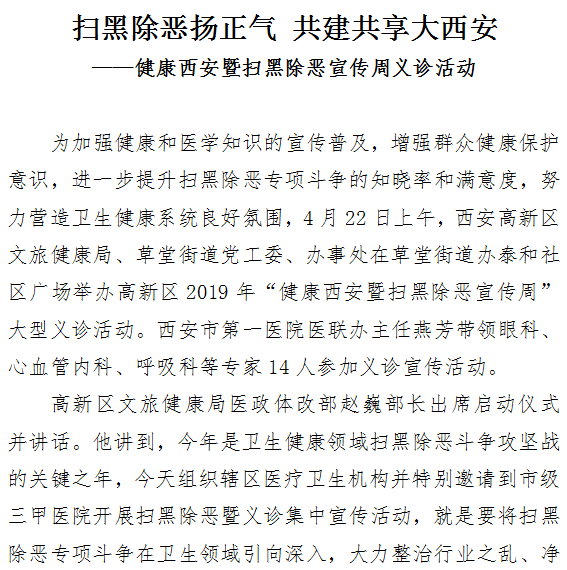扫黑除恶扬正气 共建共享大西安——健康西安暨扫黑除恶宣传周义诊活动
