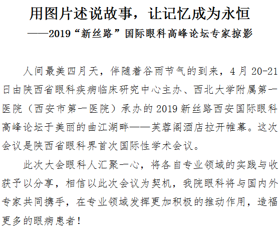 用图片述说故事,让记忆成为永恒——2019“新丝路”国际眼科高峰论坛专家掠影