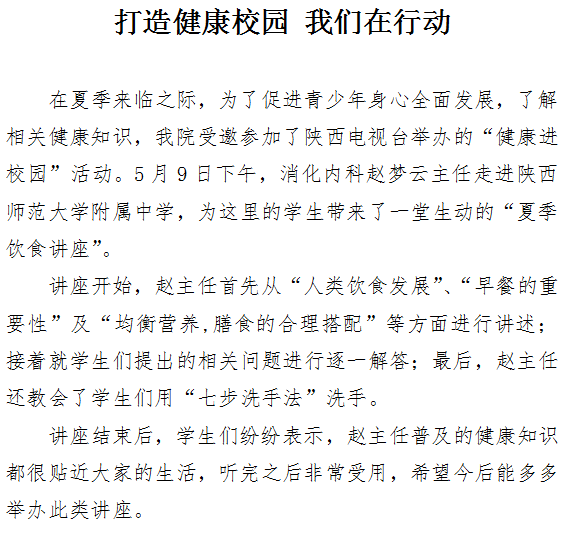 打造健康校园 我们在行动