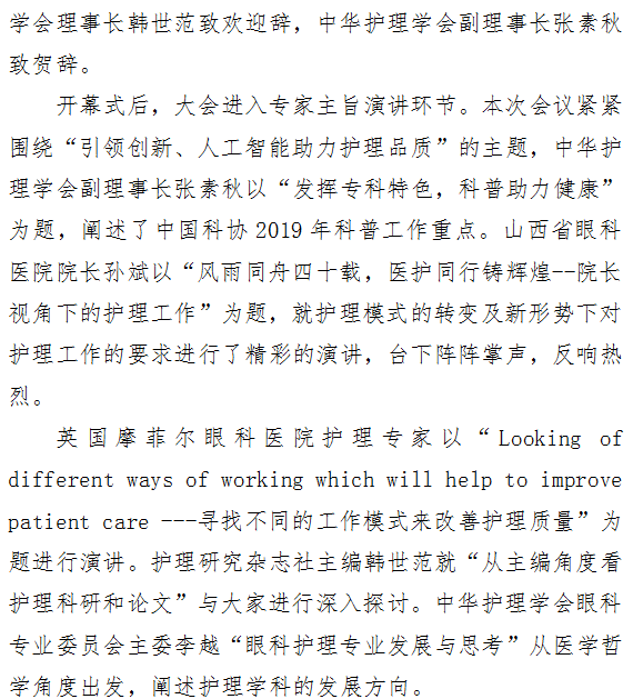 不断学习 谱写新篇——记我院护理人员参加2019年中华护理学会全国眼科护理学术交流会议