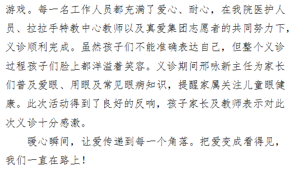 “全国助残日”我院小儿眼科医护团队为特殊儿童义诊