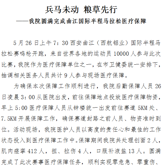 兵马未动 粮草先行——我院圆满完成曲江国际半程马拉松医疗保障