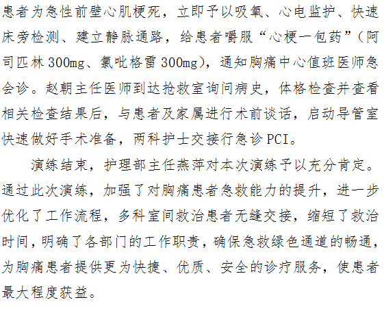 时间就是心肌,时间就是生命——记胸痛绿色通道护理应急演练