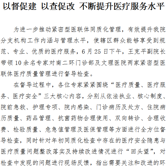 以督促建 以查促改 不断提升医疗服务水平