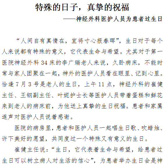 特殊的日子,真挚的祝福 ——神经外科医护人员为患者过生日