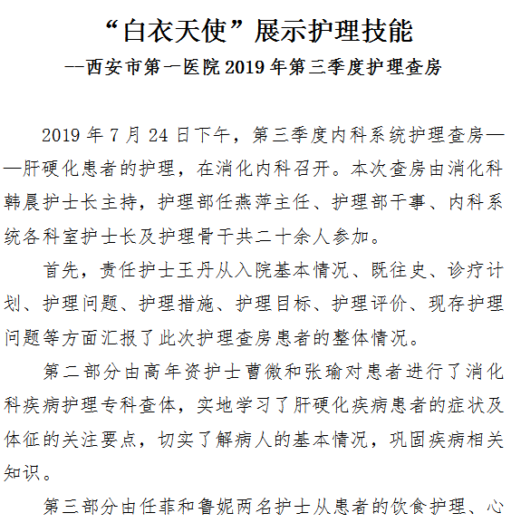 “白衣天使”展示护理技能— 探花av 2019年第三季度护理查房