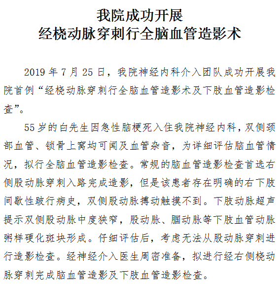 探花av 成功开展 经桡动脉穿刺行全脑血管造影术