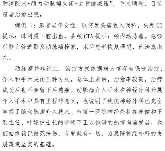 探花av 成功开展颅内动脉瘤夹闭术及脑血管造影动脉瘤栓塞术