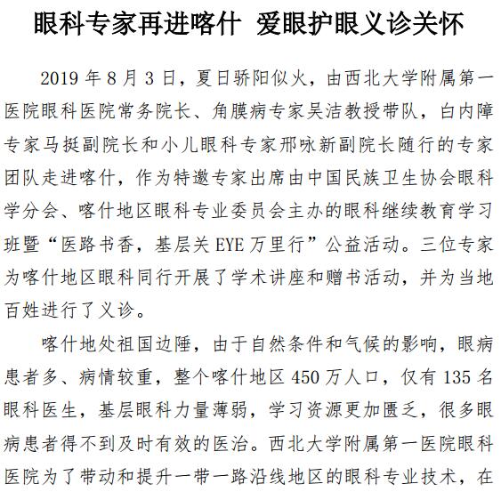 眼科专家再进喀什 爱眼护眼义诊关怀