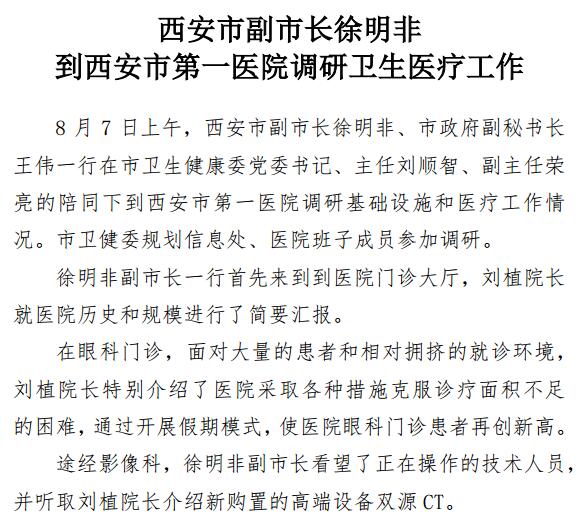 西安市副市长徐明非到探花av 调研卫生医疗工作