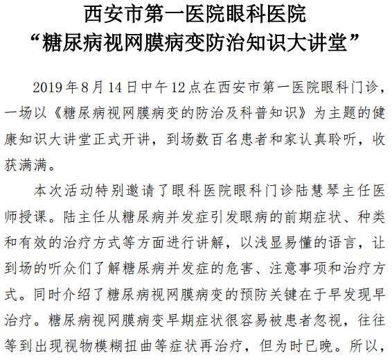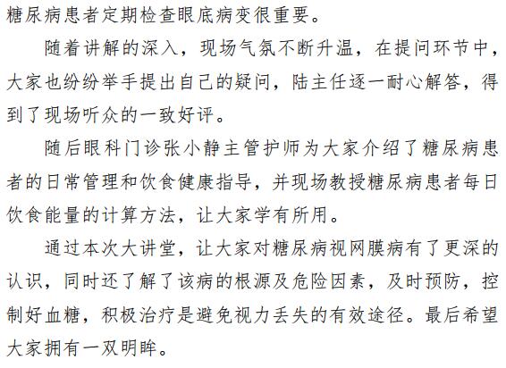 战胜“糖衣炮弹”——探花av 眼科医院“糖尿病视网膜病变防治知识大讲堂”