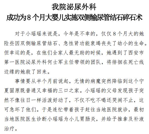 探花av 泌尿外科成功为8个月大婴儿实施双侧输尿管结石碎石术