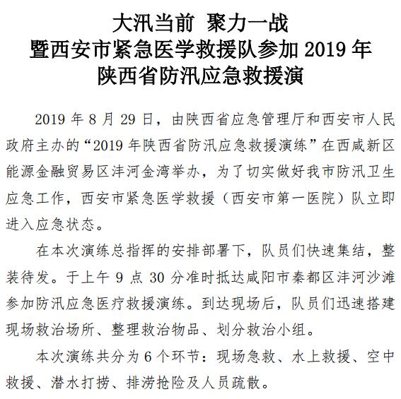 大汛当前 聚力一战 暨西安市紧急医学救援队参加2019年陕西省防汛应急救援演