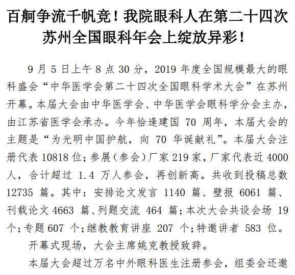 百舸争流千帆竞!我院眼科人在第二十四次苏州全国眼科年会上绽放异彩!