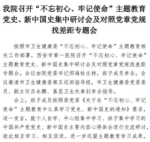 我院召开“不忘初心、牢记使命”主题教育党史、新中国史集中研讨会及对照党章党规找差