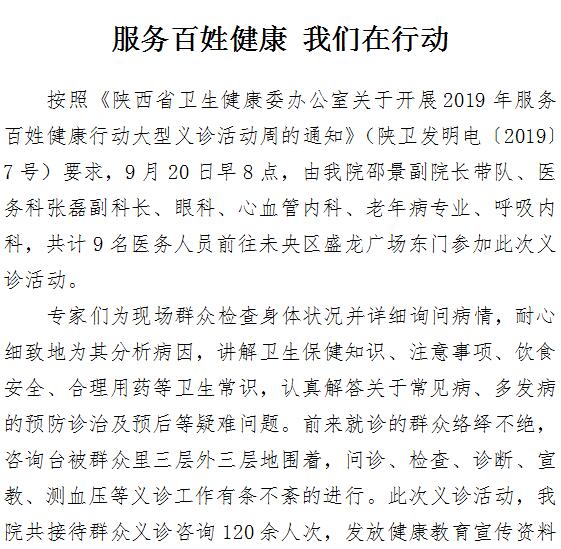 服务百姓健康 我们在行动