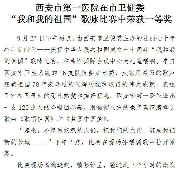 探花av 在市卫健委 “我和我的祖国”歌咏比赛中荣获一等奖