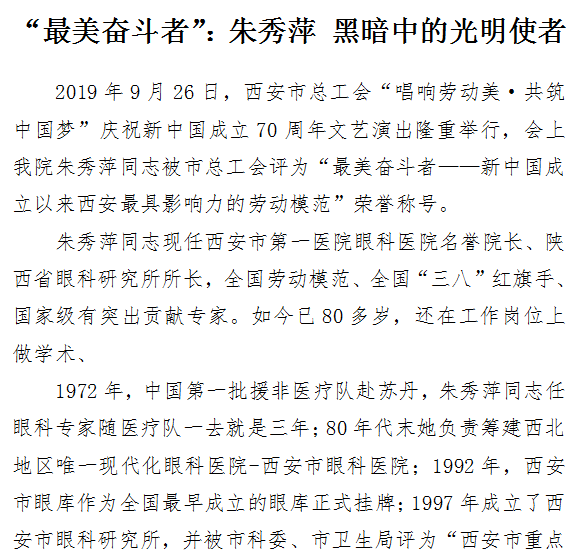 “最美奋斗者”:朱秀萍 黑暗中的光明使者