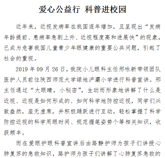 爱心公益行 科普进校园