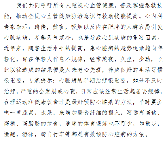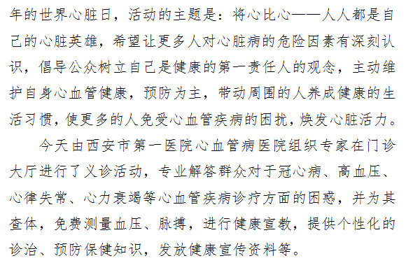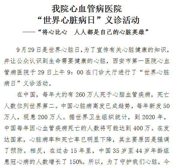 我院心血管病医院 “世界心脏病日”义诊活动 ——“将心比心 人人都是自己的心脏英雄