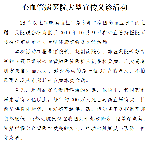 心血管病医院大型宣传义诊活动