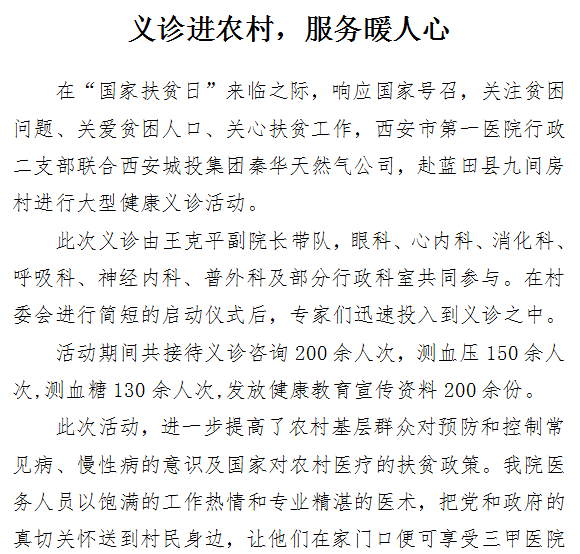 义诊进农村,服务暖人心