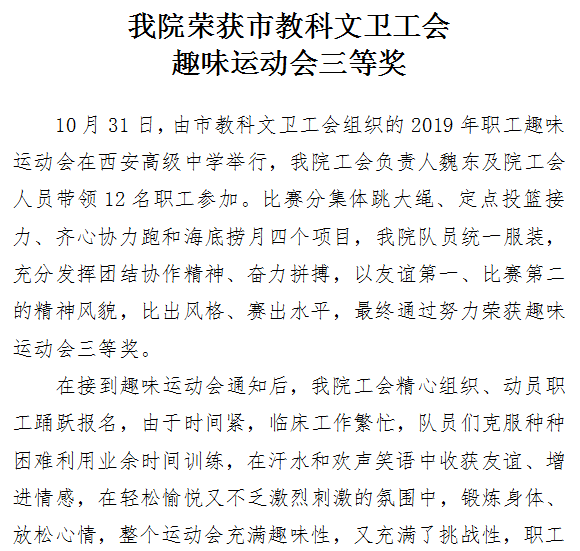 探花av 荣获市教科文卫工会趣味运动会三等奖