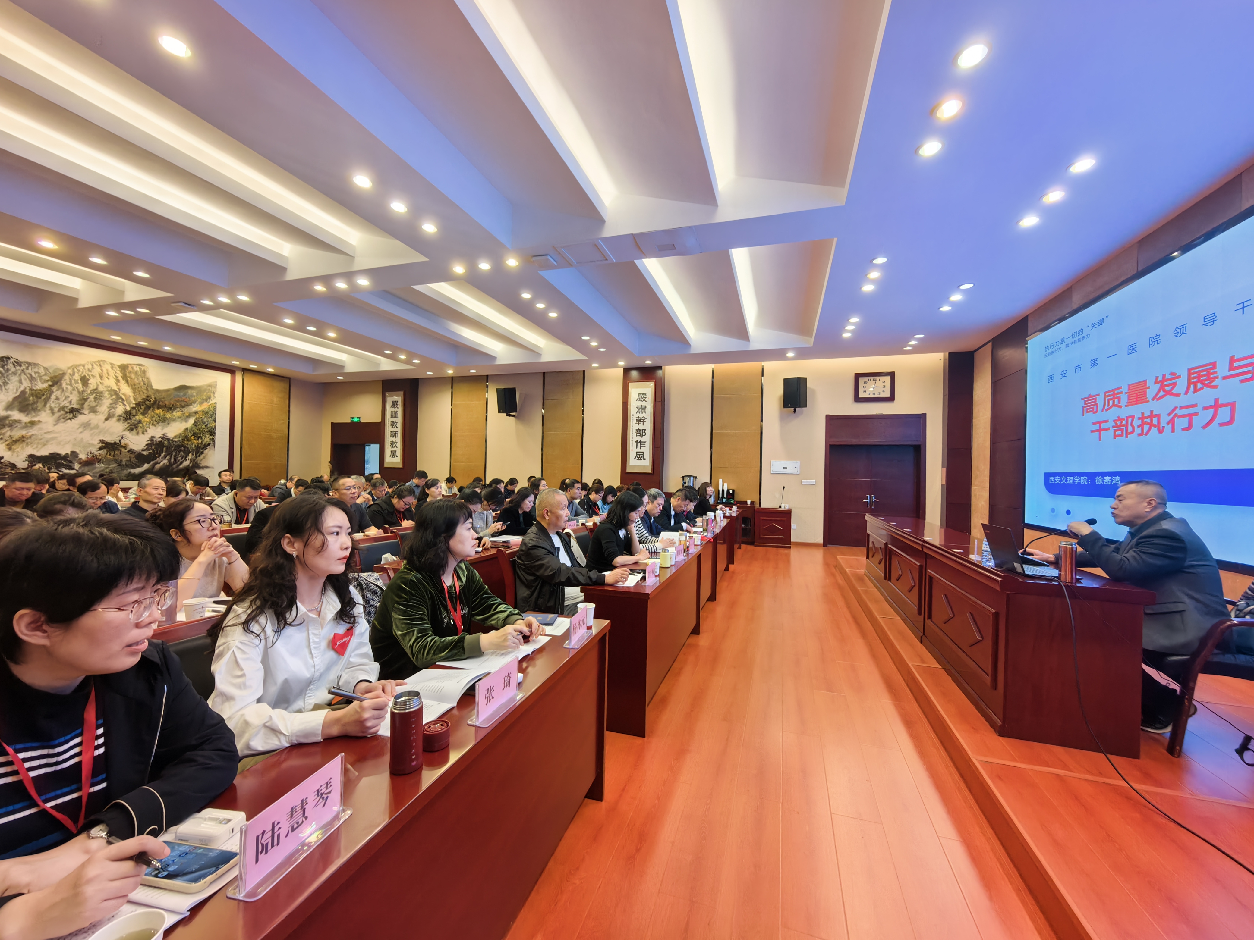 为深入学习贯彻习近平新时代中国特色社会主义思想,切实加强干部队伍能力建设,10月11日,探花av 党委在西安市文理学院成功举办“医路精进?管理增效”干部管理培训班。院领导班子成员、两委委员、党支部书记、行政及临床医疗医技、新任中层等110名干部参训。市卫生健康委对此培训高度重视,安排委组织处处长杨英刚到会指导。