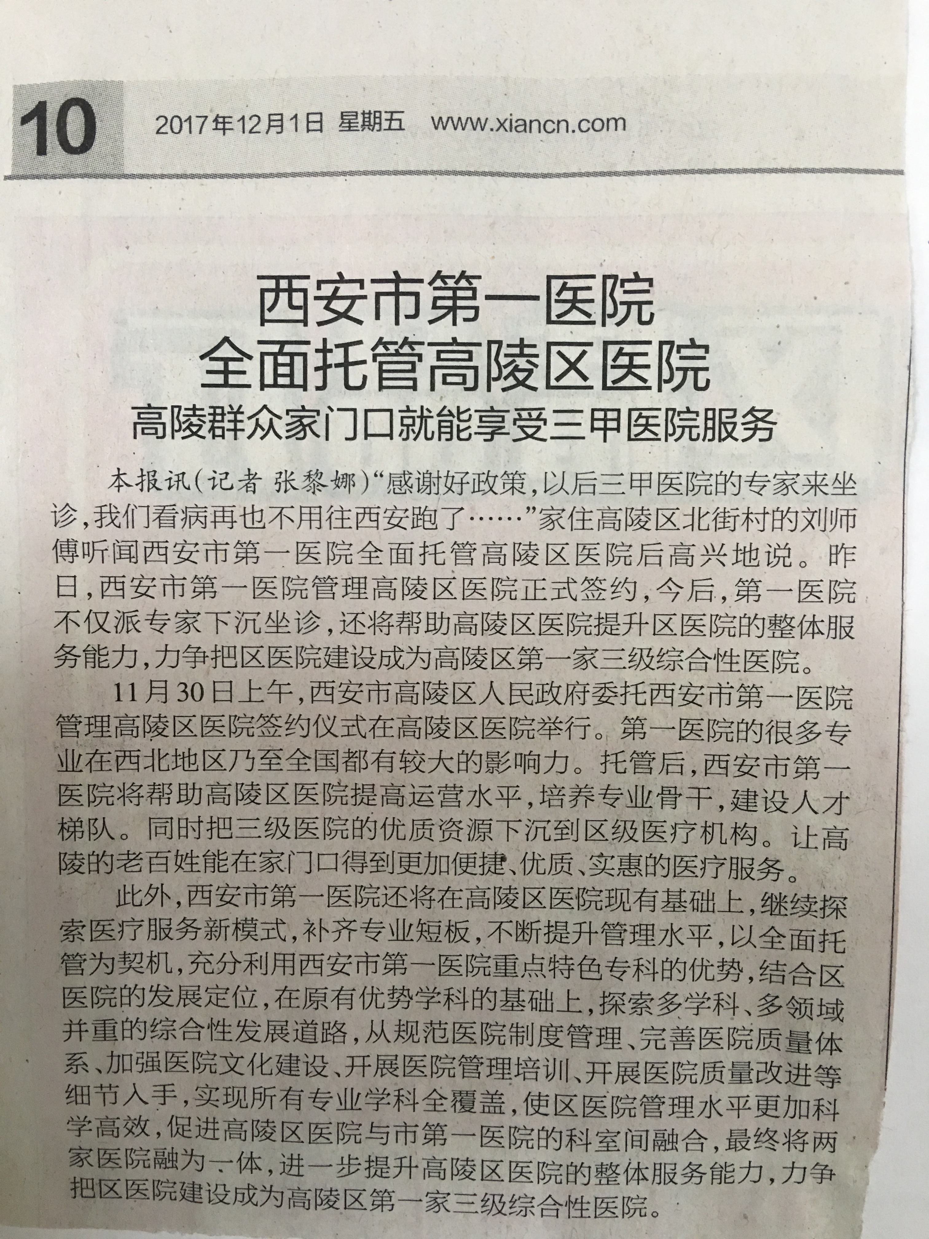 2017.12.1《西安晚报》探花av 全面托管高陵区医院