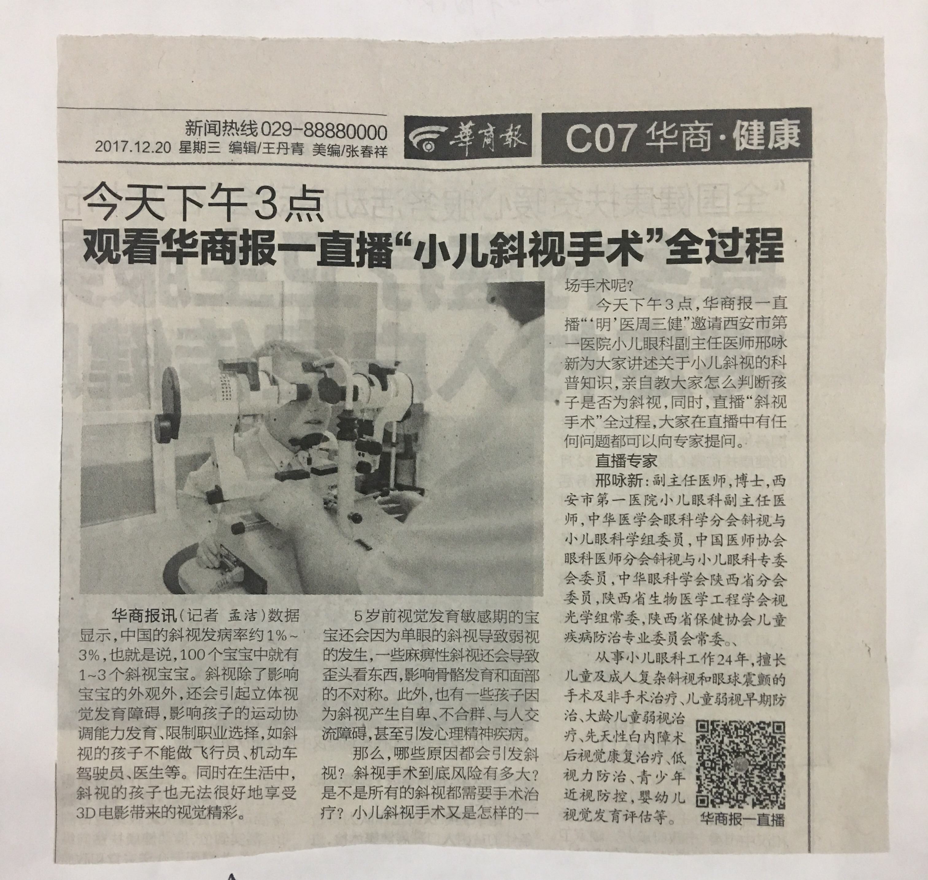 2017.12.20《华商报》观看华商报一直播“小儿斜视手术”全过程