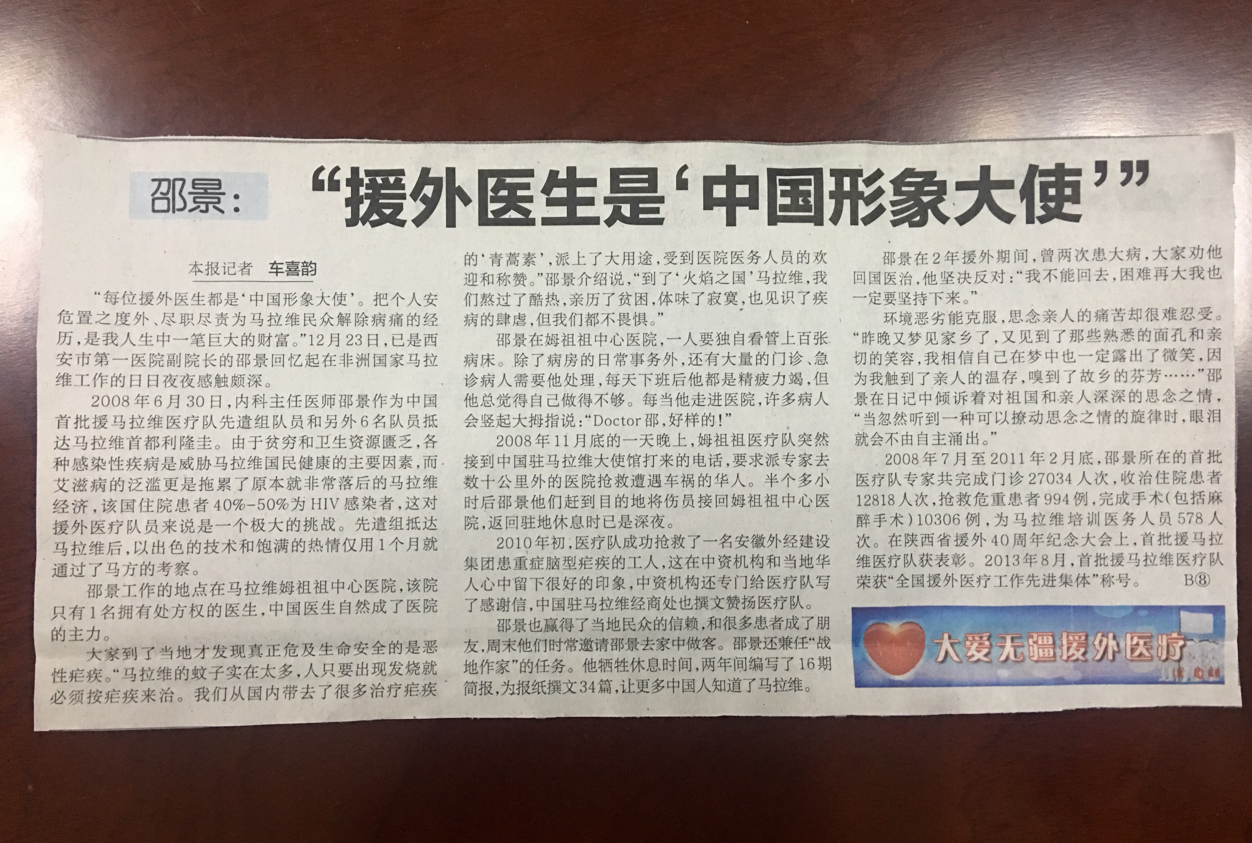 2017.12.26《陕西日报》邵景:“援外医生是‘中国形象大使’”