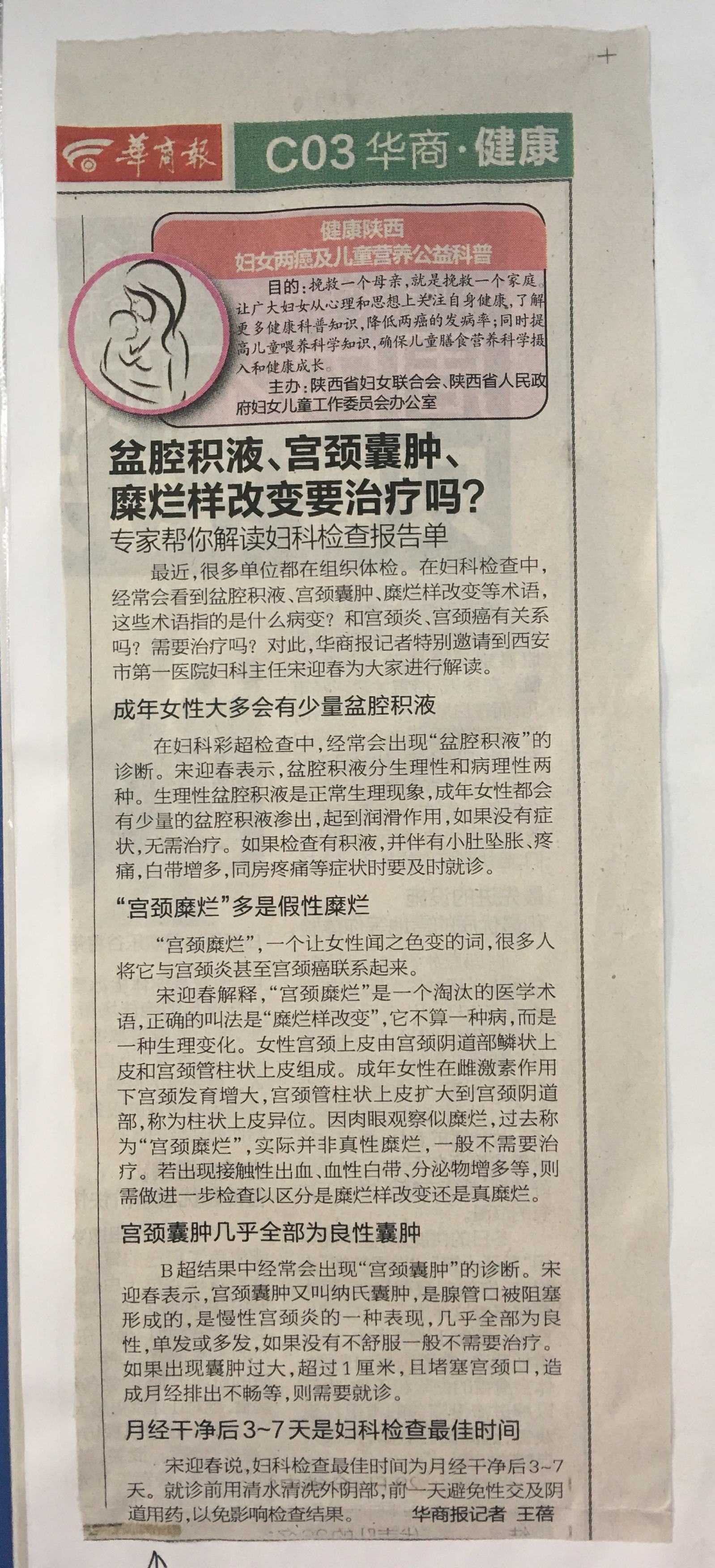 2018.1.3《华商报》盆腔积液、宫颈囊肿、糜烂样改变要治疗吗?