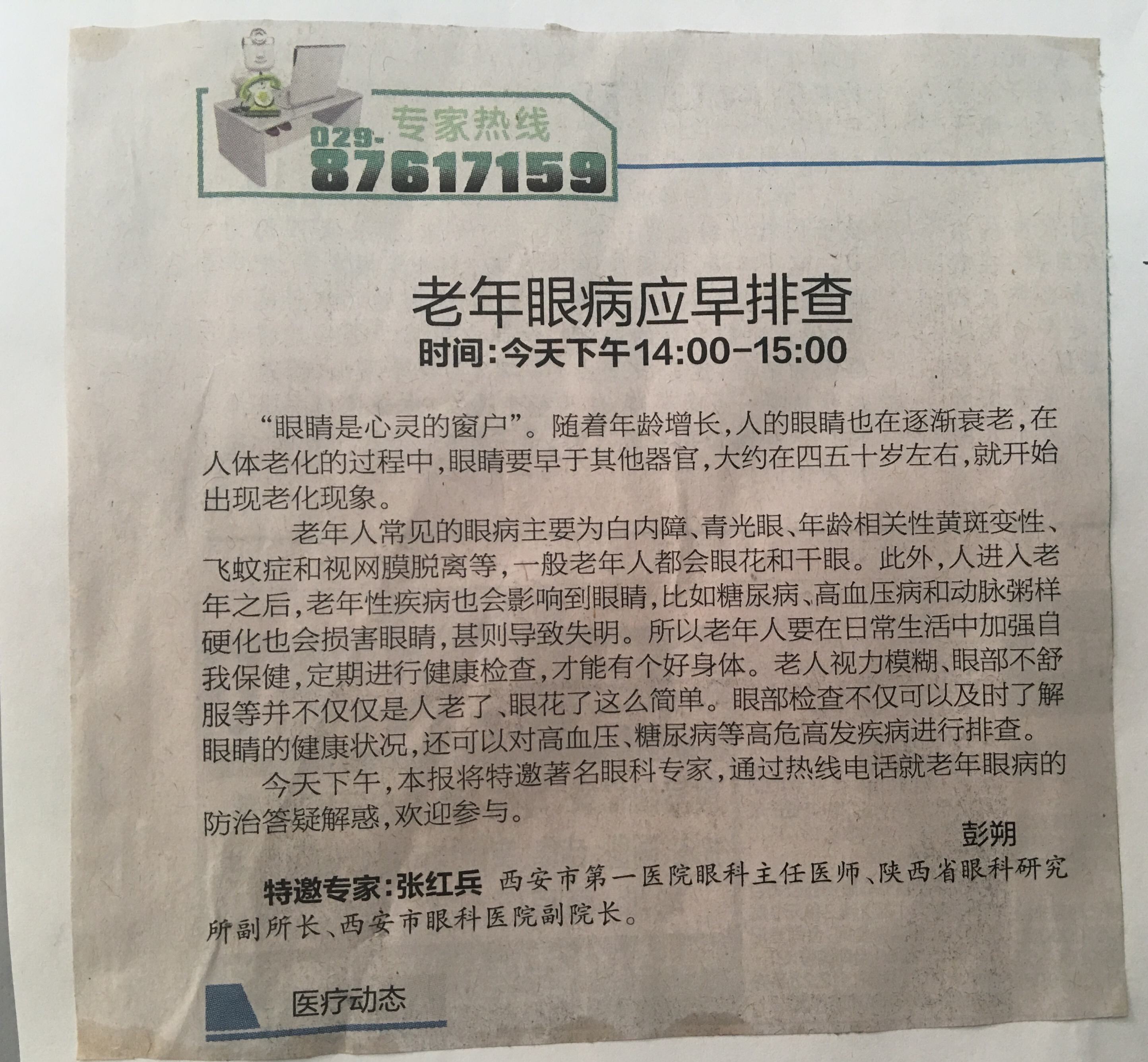 2018.6.5《西安晚报》老年眼病应早排查(16版)