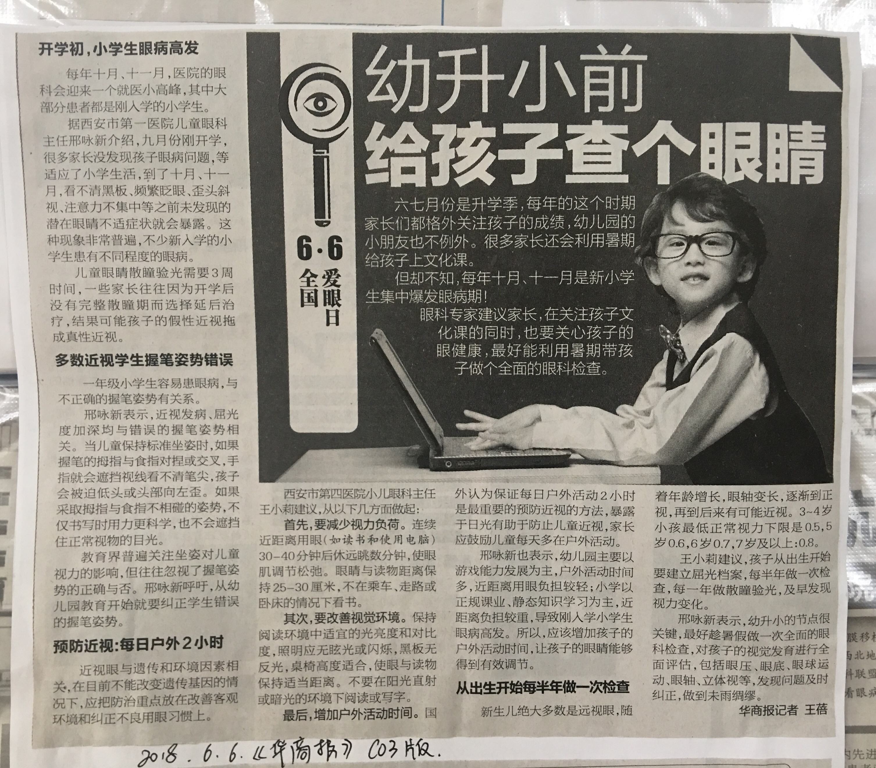 2018.6.6《华商报》幼升小前给孩子查个眼睛