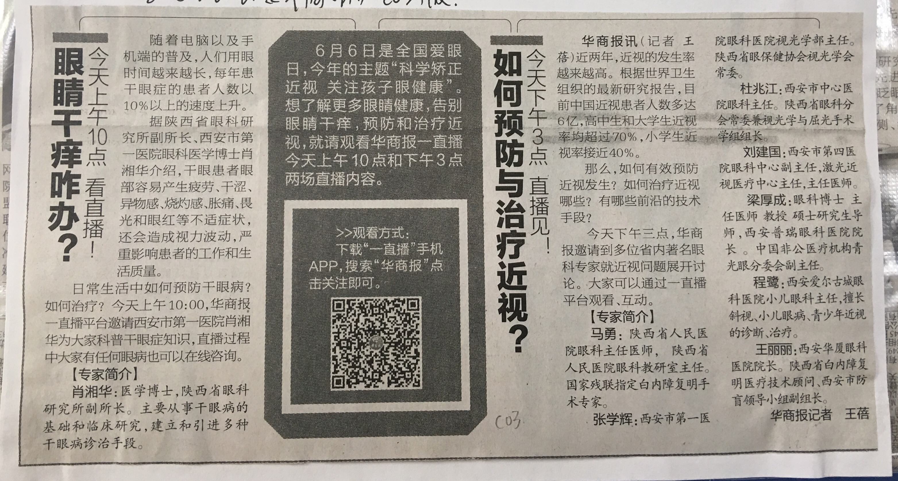 2018.6.6 《华商报》直播预告 眼睛干痒咋办?