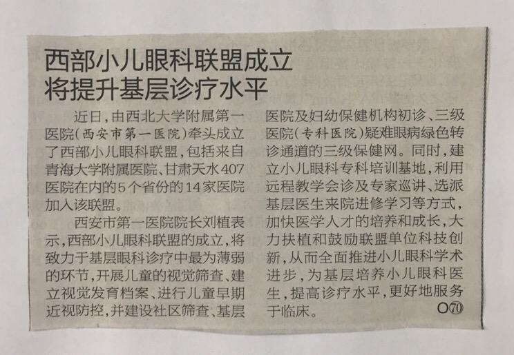 2018.6.15《华商报》西部小儿眼科联盟成立将提升基层诊疗水平