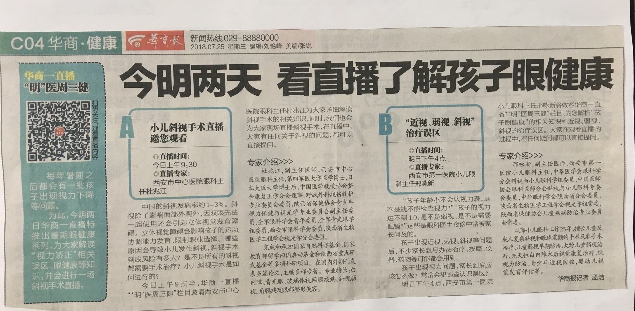2018.7.25《华商报》今明两天 看直播了解孩子眼健康