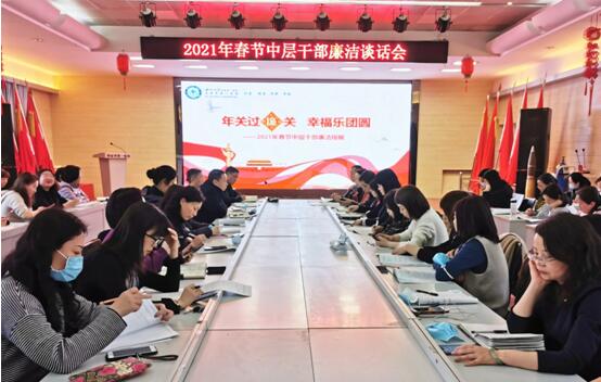 召开2021年春节中层干部廉洁谈话会,院领导及全体中层干部参加会议。