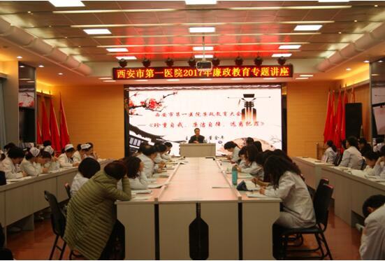 为全面贯彻落实委纪委党风廉政建设和反腐纠风工作精神,增强职工廉洁自律意识,使职工树立正确的世界观、人生观、价值观。2月20日下午,我院邀请原西安市检察院高级检察官、西安市预防职务犯罪宣讲团副团长、西安交大预防职务犯罪主讲人董金年同志进行了题为《珍重自我、廉洁从业、远离犯罪》的廉政教育讲座。会议由纪委书记白敏芳主持,院领导、全体中层和部分党员代表聆听了讲座。