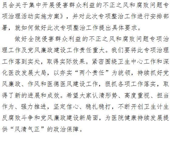 我院召开《关于集中开展侵害群众利益的不正之风和腐败问题》专项治理活动专题工作会议