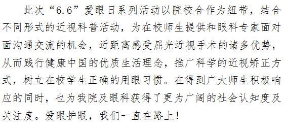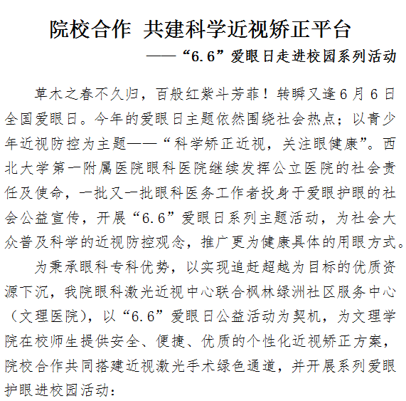 院校合作 共建科学近视矫正平台 ——“6.6”爱眼日走进校园系列活动