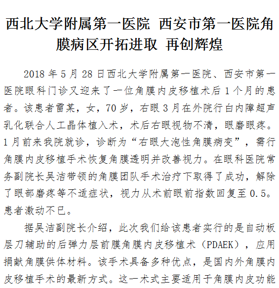 西北大学附属第一医院 探花av 角膜病区开拓进取 再创辉煌