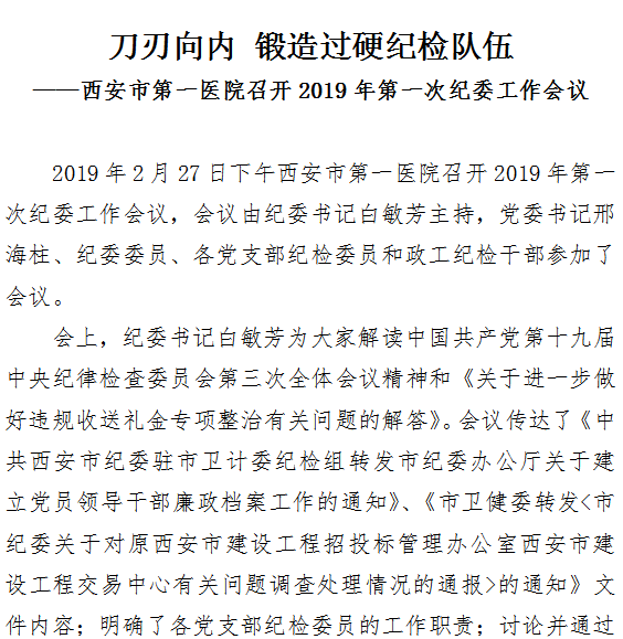 刀刃向内 锻造过硬纪检队伍——探花av 召开2019年第一次纪委工作会议