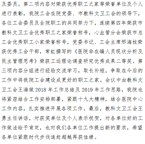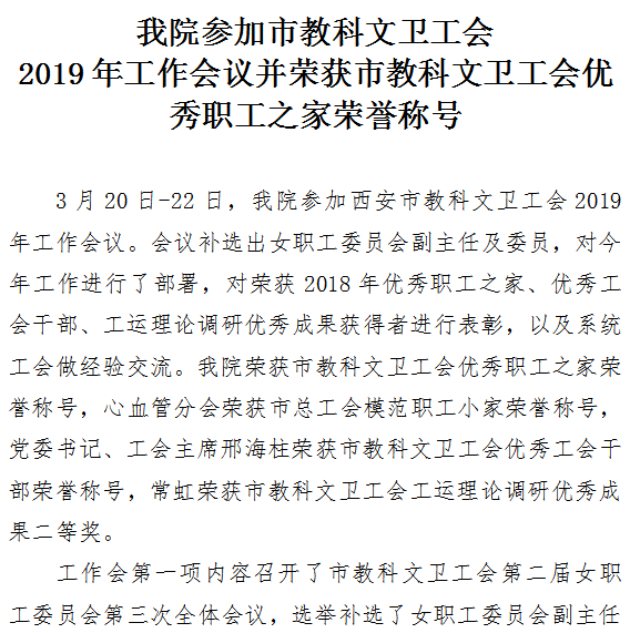 我院参加市教科文卫工会2019年工作会议并荣获市教科文卫工会优秀职工之家荣誉称号