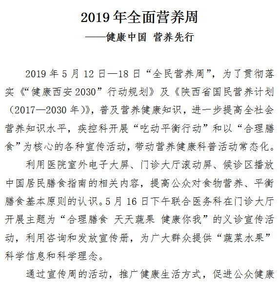 2019年全面营养周 ——健康中国 营养先行