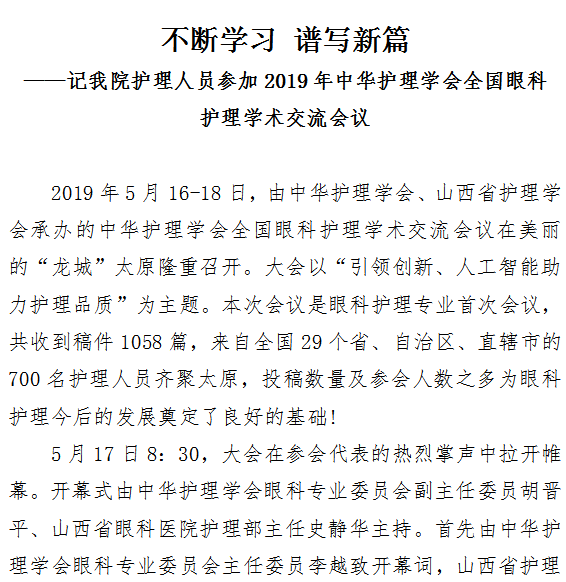 不断学习 谱写新篇——记我院护理人员参加2019年中华护理学会全国眼科护理学术交流会议