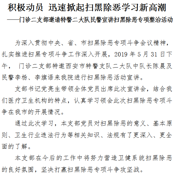 积极动员 掀起扫黑除恶学习新高潮——门诊二支部邀请特警二大队民警宣讲扫黑除恶活动