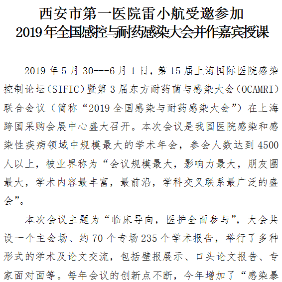 探花av 雷小航受邀参加2019年全国感控与耐药感染大会并作嘉宾授课