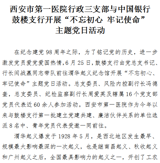 探花av 行政三支部与中国银行鼓楼支行开展“不忘初心 牢记使命” 主题党日活动