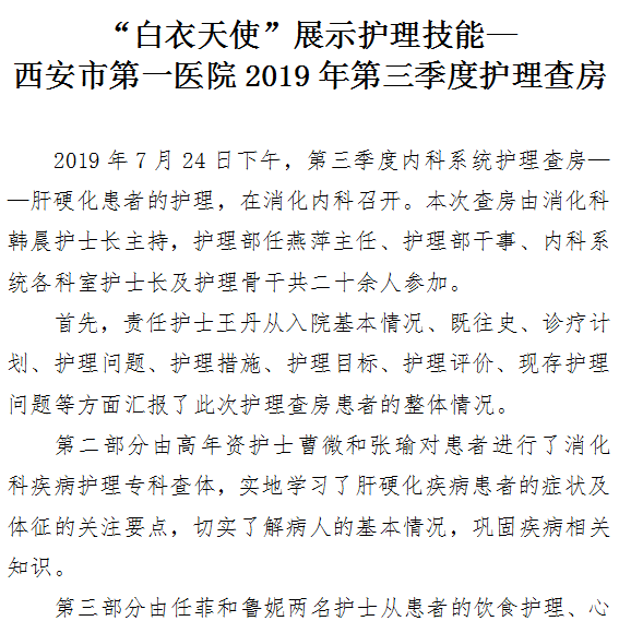 “白衣天使”展示护理技能— 探花av 2019年第三季度护理查房